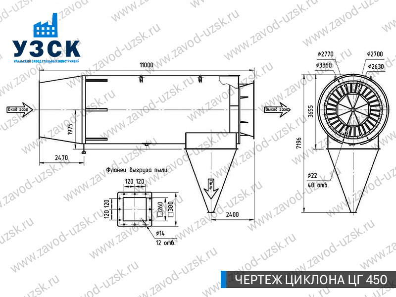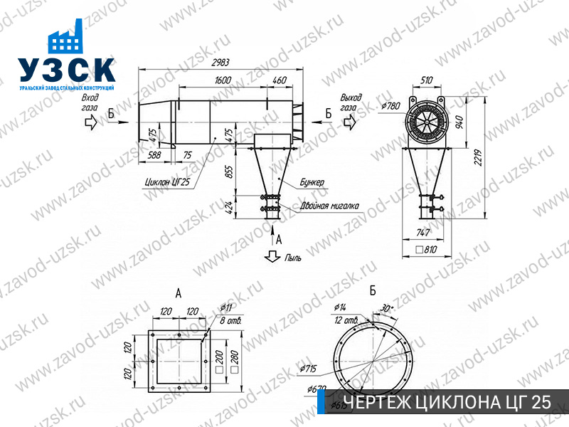 Монтаж циклона-искрогасителя ЦГ должен осуществляться непосредственно к горизонтальному вентиляционному каналу на входе в систему фильтрации и аспирации. Заказать изготовление по индивидуальному техзаданию или купить готовый циклон-искрогаситель ЦГ на заводе УЗСК в Челябинске можно, оставив заявку прямо на сайте или позвонив по указанному телефону, уточнив все детали касательно продажи оборудования.